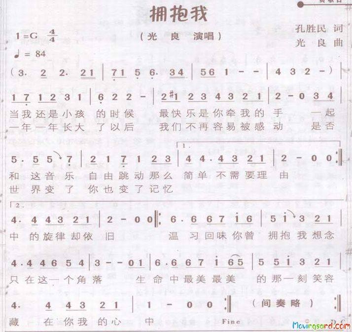 拥抱我-光良(简谱 歌谱 歌曲简谱 合唱简谱 影视简谱)