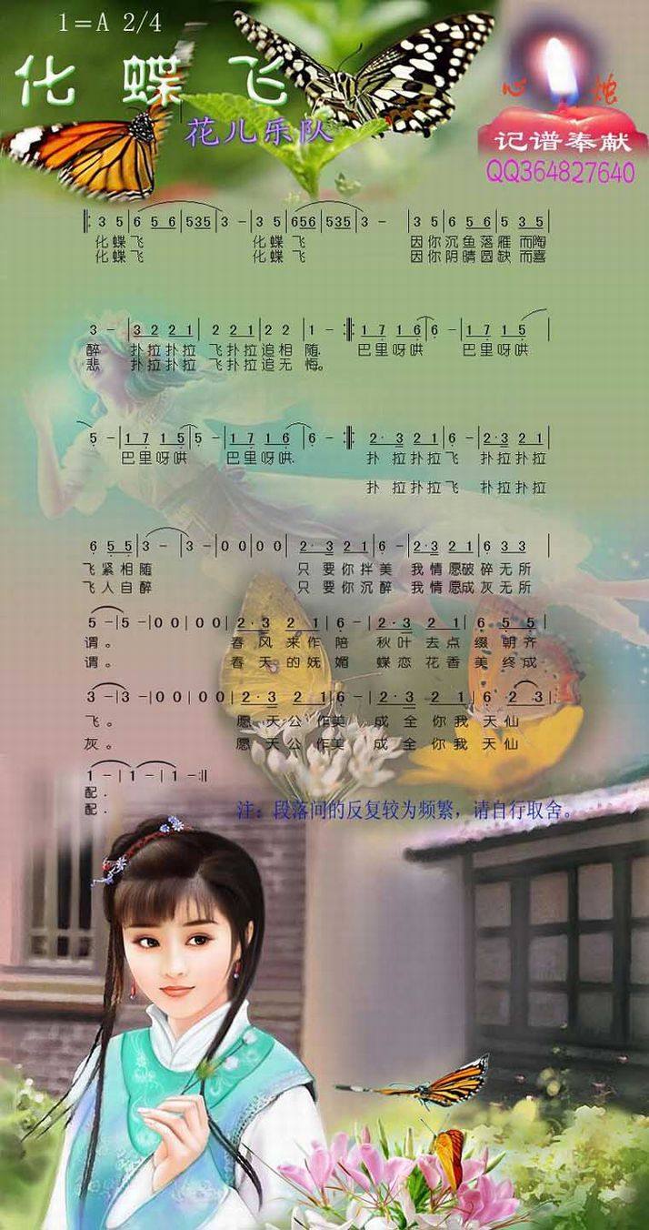 曲名:化蝶飞 歌手:花儿乐队
