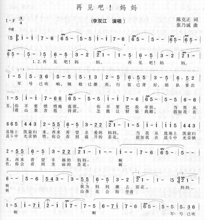 再见吧,妈妈-李双江(简谱 歌谱 歌曲简谱 合唱简谱 影视简谱)