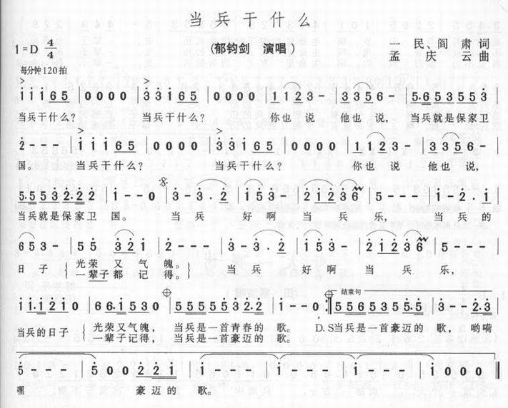 当兵干什么-郁钧剑(简谱 歌谱 歌曲简谱 合唱简谱 影视简谱 军旅歌曲简谱)