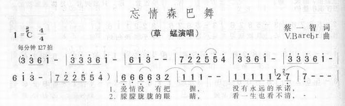 >> 忘情森巴舞-草蜢(简谱)