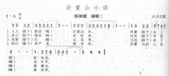 沂蒙山小调-彭丽媛(简谱 歌谱 歌曲简谱 合唱简谱 影视简谱 军旅歌曲简谱)