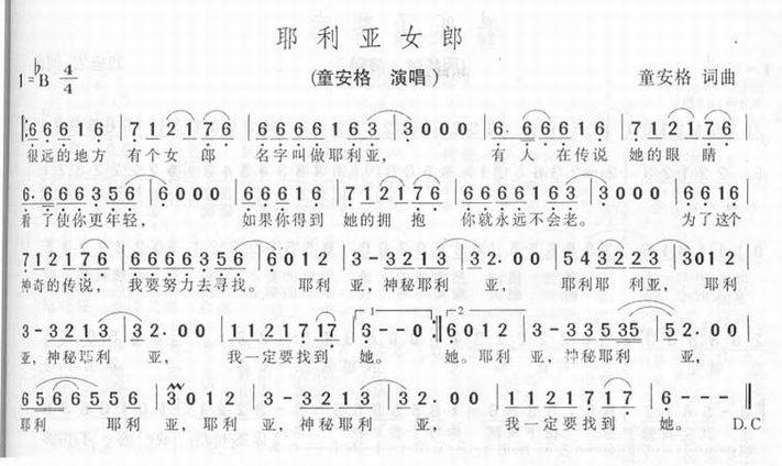 耶利亚女郎-童安格(简谱 歌谱 歌曲简谱 合唱简谱 影视简谱 军旅歌曲简谱)