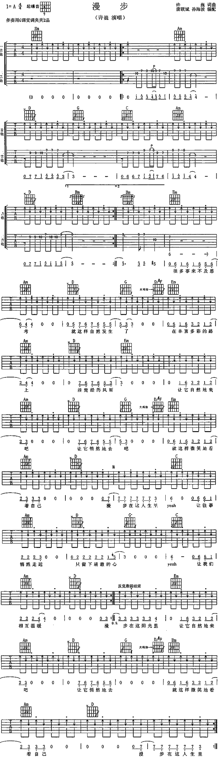 漫步-许巍(吉他谱 吉他六线谱 吉他歌谱 吉它谱 影视吉他谱)