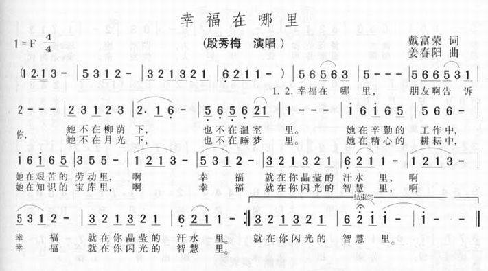 幸福在哪里-殷秀梅(简谱 歌谱 歌曲简谱 合唱简谱 影视简谱 军旅歌曲简谱)