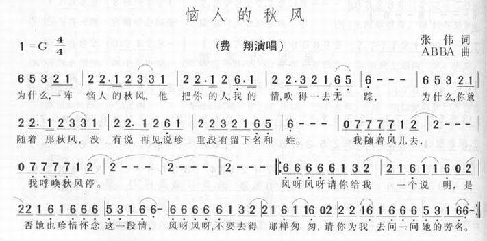 恼人的秋风-费翔(简谱 歌谱 歌曲简谱 合唱简谱 影视简谱 军旅歌曲简谱)