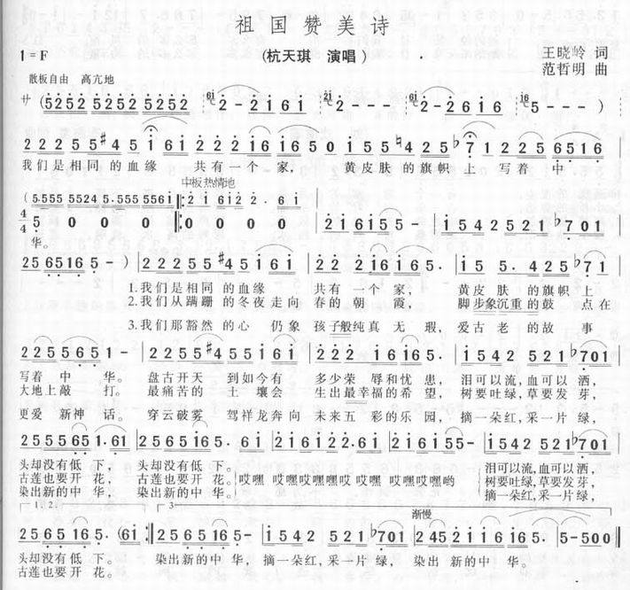 >> 祖国赞美诗-杭天琪(简谱)