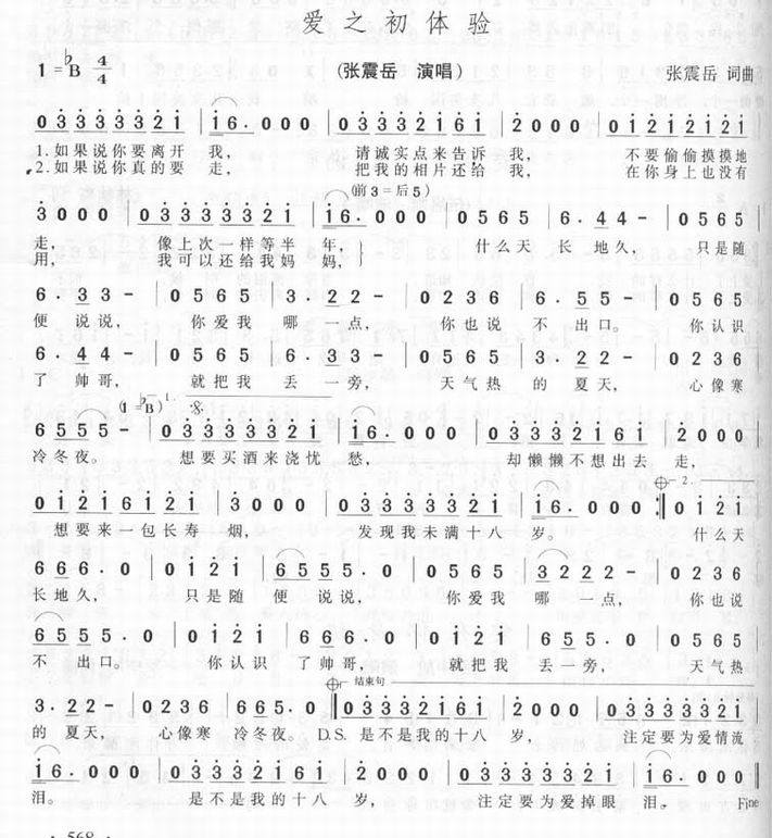 爱之初体验-张震岳(简谱 歌谱 歌曲简谱 合唱简谱 影视简谱 军旅歌曲简谱)