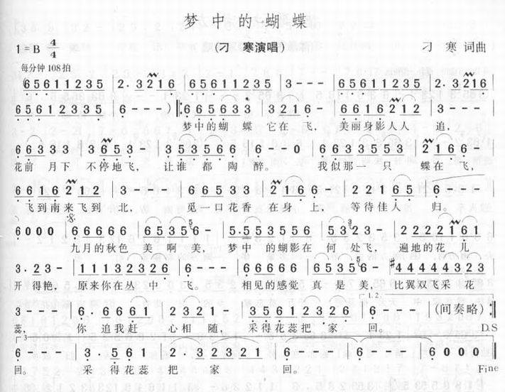 梦中的蝴蝶-刁寒(简谱 歌谱 歌曲简谱 合唱简谱 影视简谱 军旅歌曲简谱)