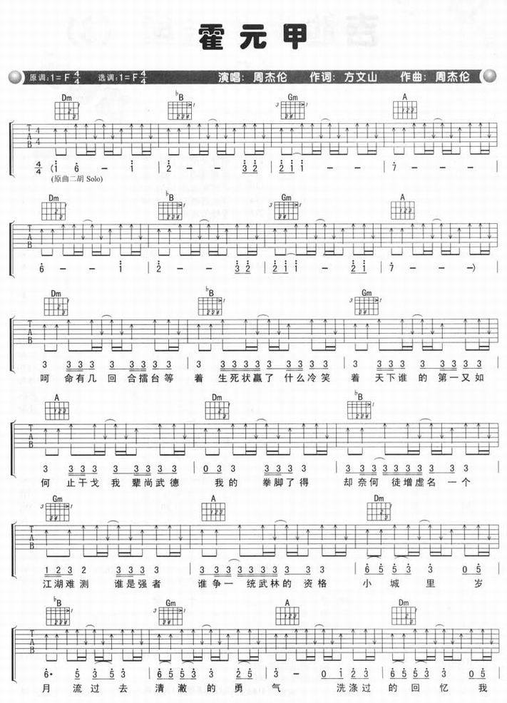 霍元甲-周杰伦(吉他谱 吉他六线谱 吉他歌谱 吉它谱 影视吉他谱)