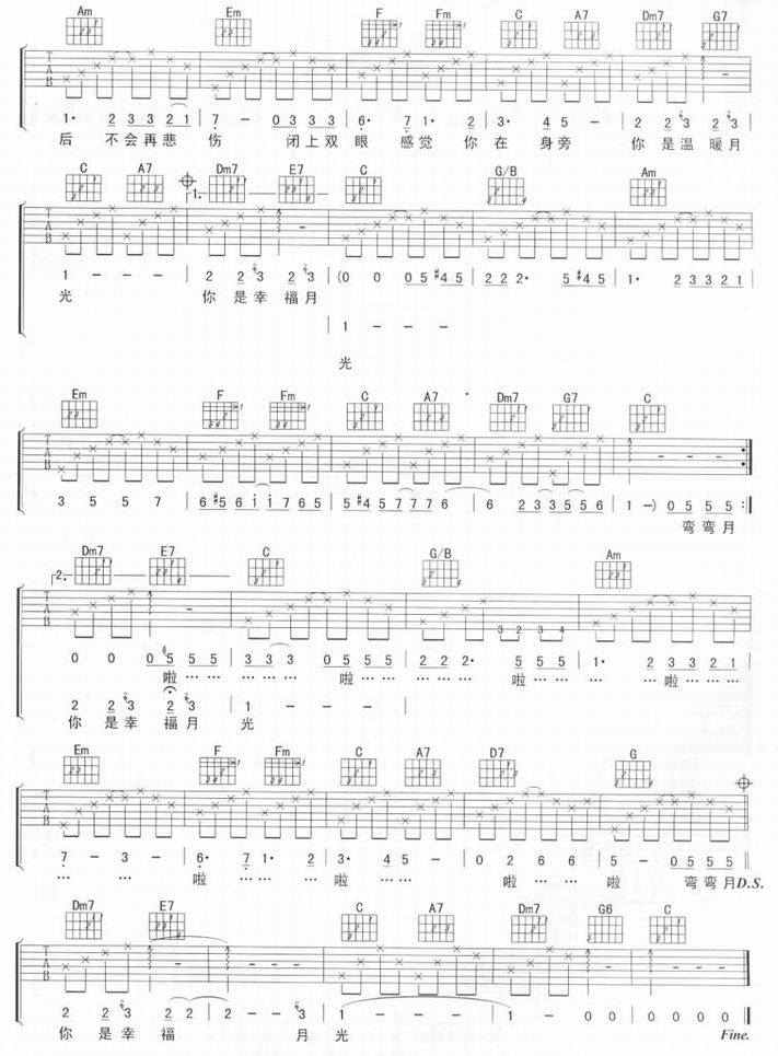 月光-王心凌(吉他谱 吉他六线谱 吉他歌谱 吉它谱 影视吉他谱)