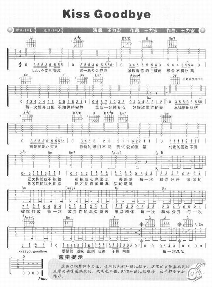 Kiss Goodbye-王力宏(吉他谱 吉他六线谱 吉他歌谱 吉它谱 影视吉他谱)