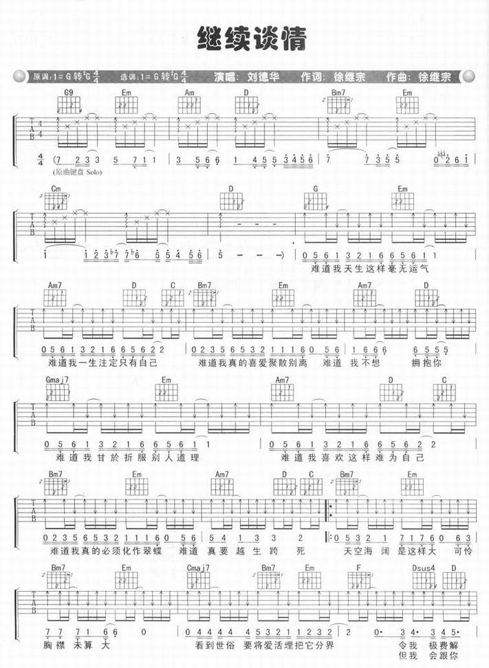 继续谈情-刘德华(吉他谱 吉他六线谱 吉他歌谱 吉它谱 影视吉他谱)
