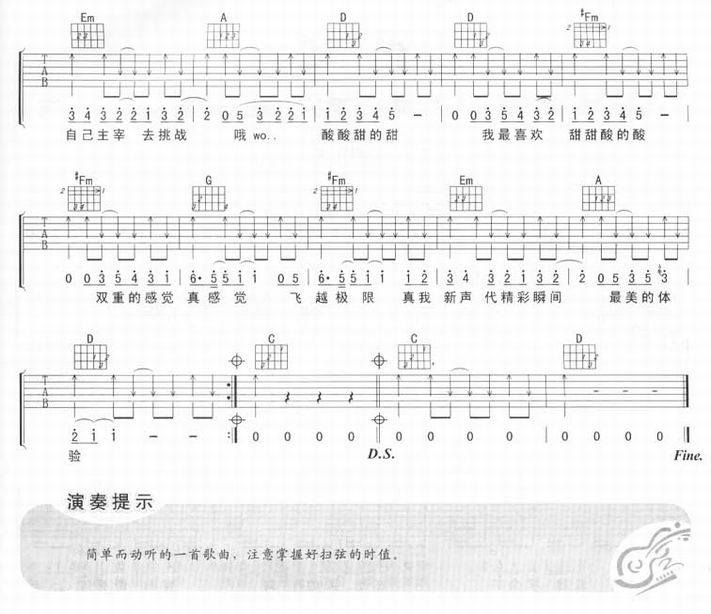 真我新声代-李宇春/陈西贝/黄雅(超级女生吉他谱 吉他六线谱 吉他歌谱 吉它谱 影视吉他谱)