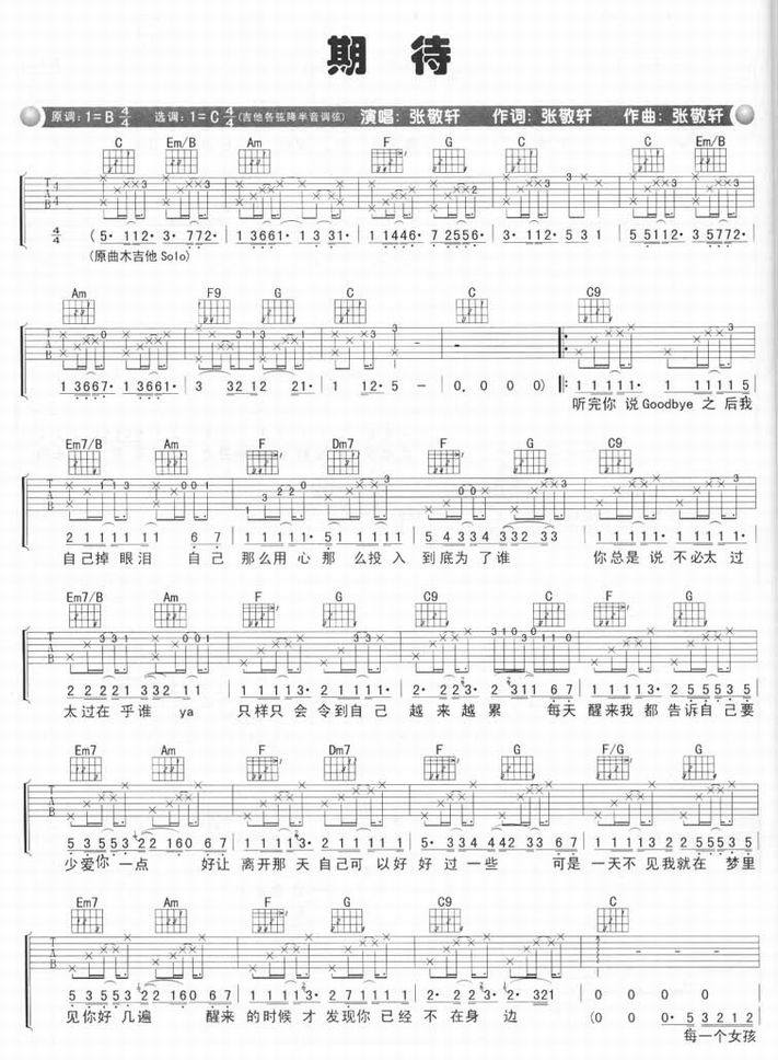 曲:张敬轩 词:张敬轩 编:张敬轩