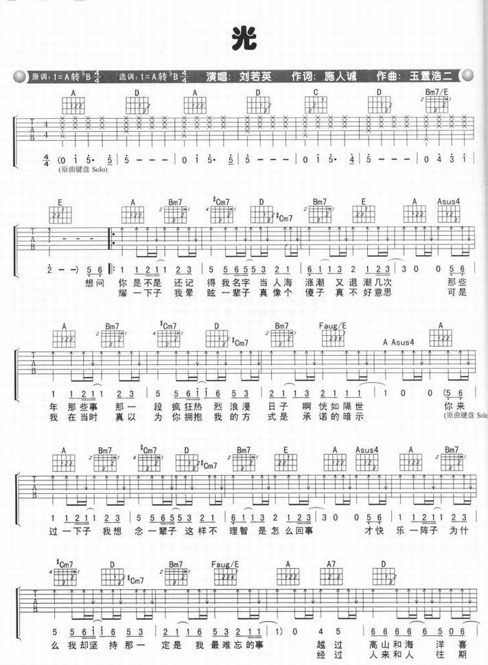 光-刘若英(吉他谱 吉他六线谱 吉他歌谱 吉它谱 影视吉他谱)