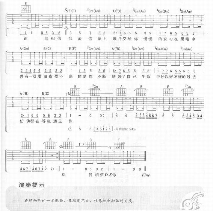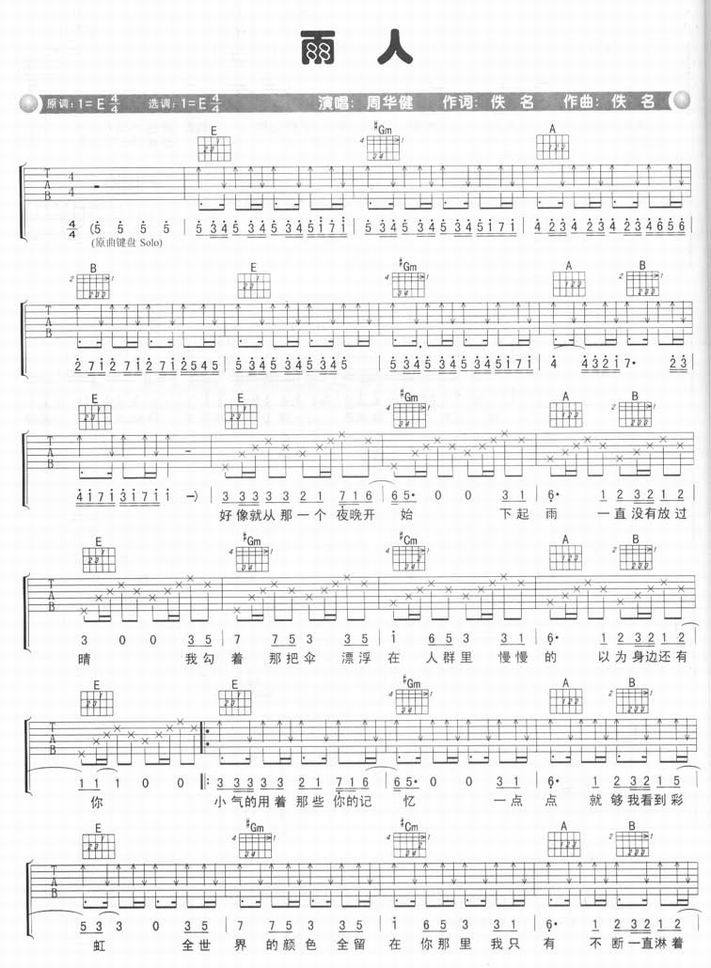 雨人-周华健(吉他谱 吉他六线谱 吉他歌谱 吉它谱 影视吉他谱)