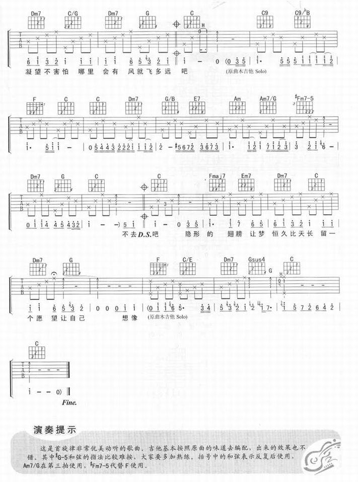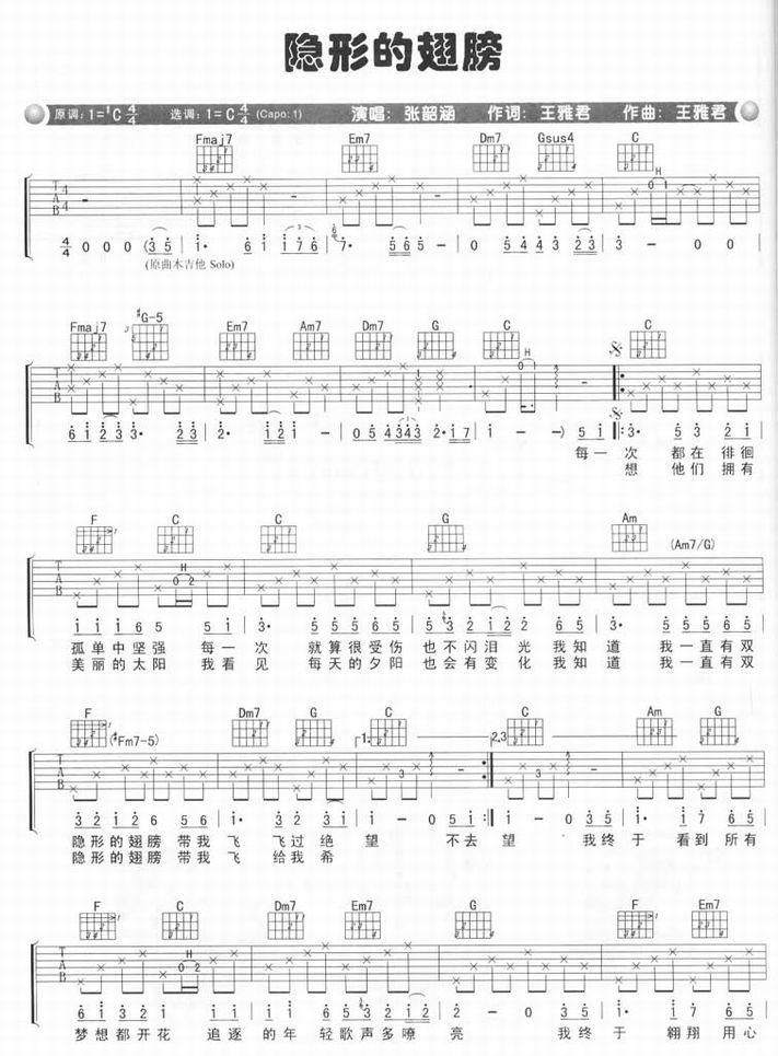 隐形的翅膀-张韶涵(吉他谱 吉他六线谱 吉他歌谱 吉它谱 影视吉他谱)