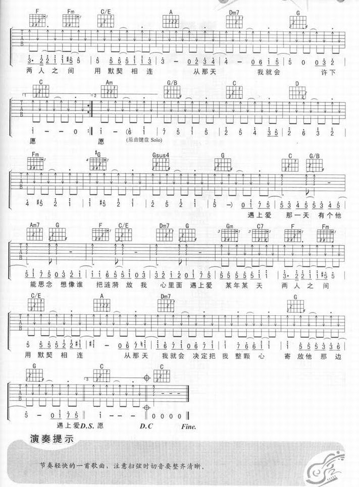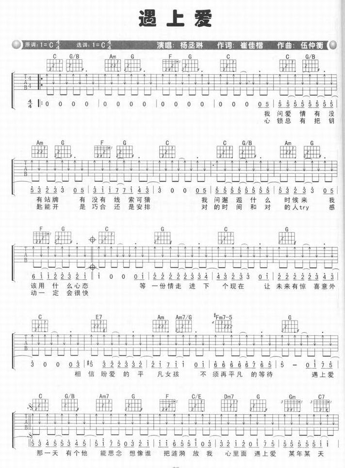 遇上爱-杨丞琳(吉他谱 吉他六线谱 吉他歌谱 吉它谱 影视吉他谱)