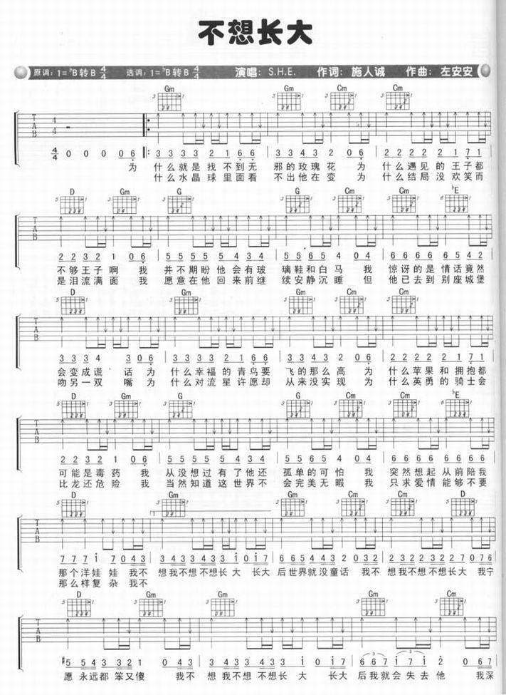 歌手:s.h.e 专辑:不想长大 词:施人诚 曲:左安安