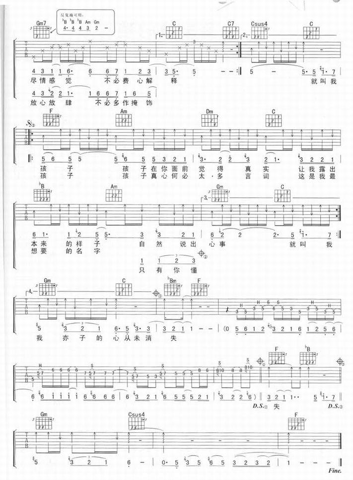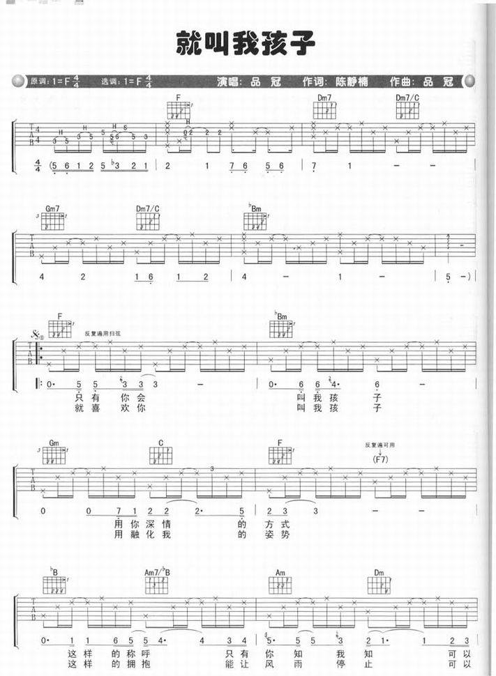 就叫我孩子-品冠(吉他谱 吉他曲谱 吉他六线谱 吉他歌谱 吉它谱 影视吉他谱)
