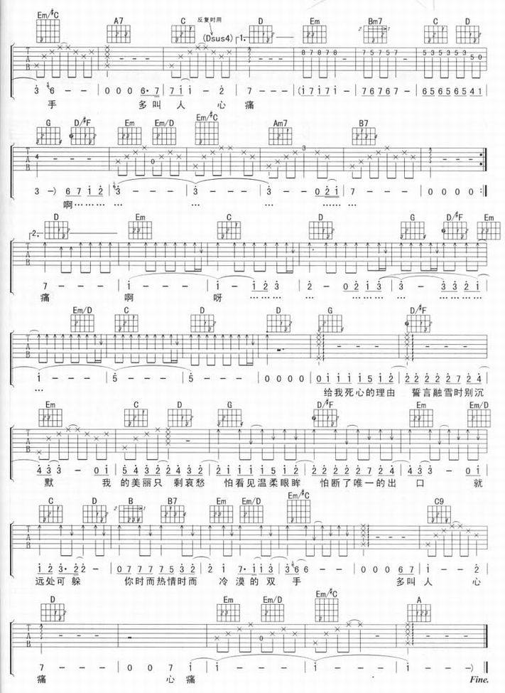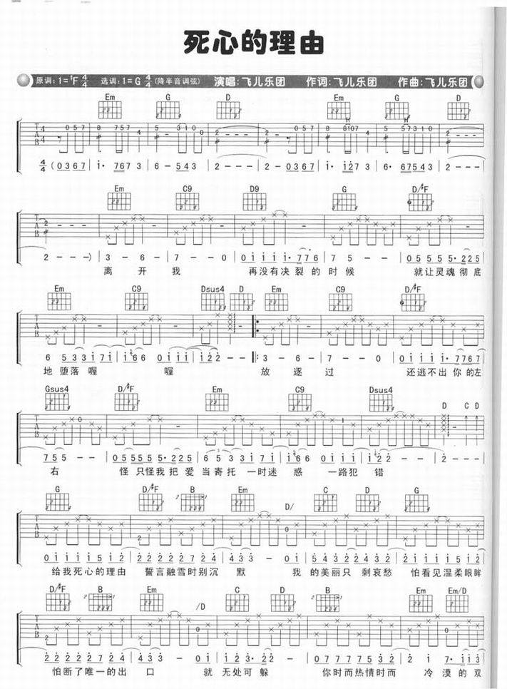 死心的理由-飞儿乐队(吉他谱 吉他曲谱 吉他六线谱 吉他歌谱 吉它谱 影视吉他谱)