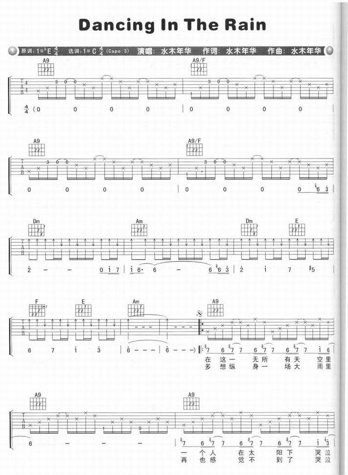 Dancing in the Rain-水木年华(吉他谱 吉他曲谱 吉他六线谱 吉他歌谱 吉它谱 影视吉他谱)