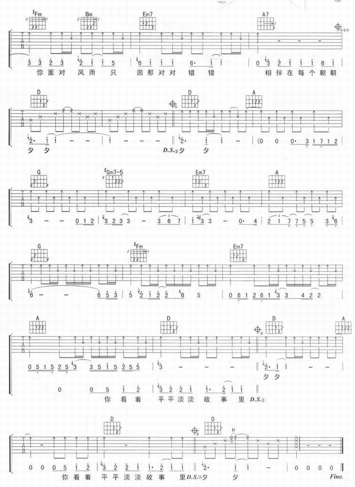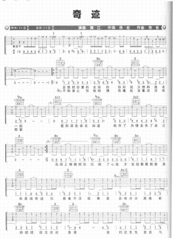 奇迹-满江(吉他谱 吉他曲谱 吉他六线谱 吉他歌谱 吉它谱 影视吉他谱)