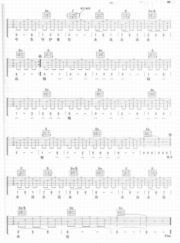 小三和弦-孙异(吉他谱 吉他曲谱 吉他六线谱 吉他歌谱 吉它谱 影视吉他谱)
