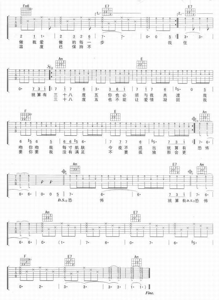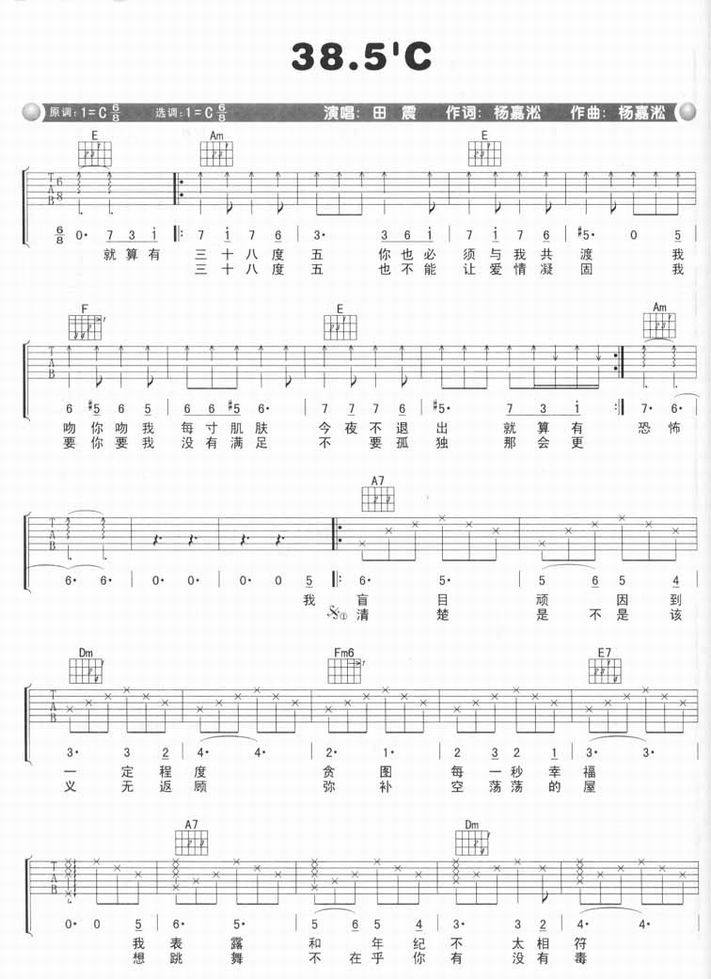 38.5℃-田震(吉他谱 吉他曲谱 吉他六线谱 吉他歌谱 吉它谱 影视吉他谱)