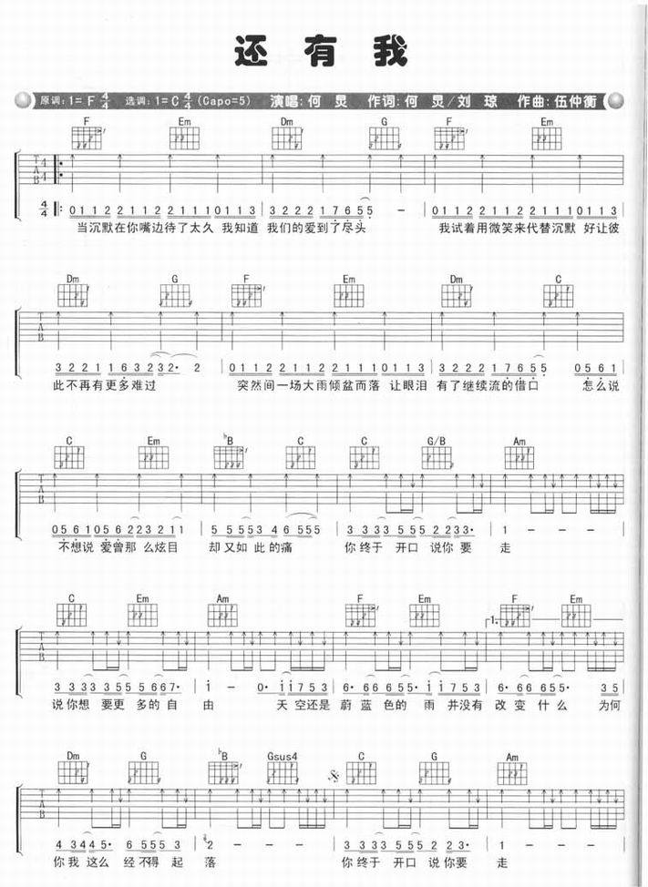 还有我-何炅(吉他谱)