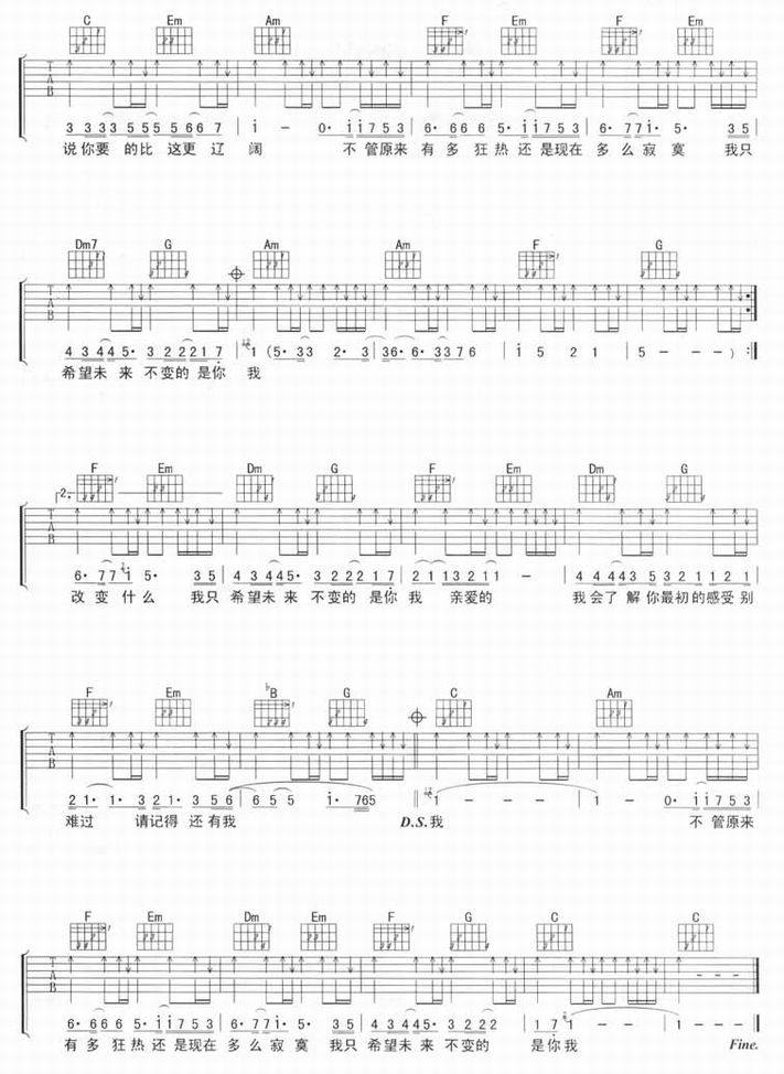 还有我-何炅(吉他谱 吉他曲谱 吉他六线谱 吉他歌谱 吉它谱 影视吉他谱)