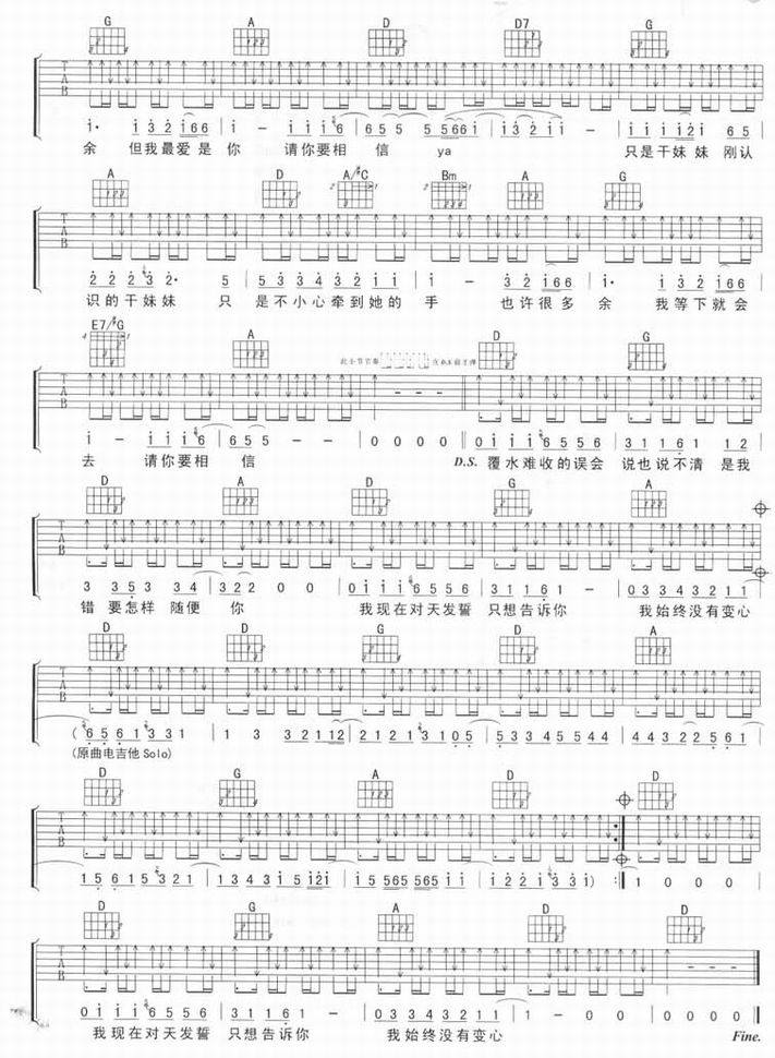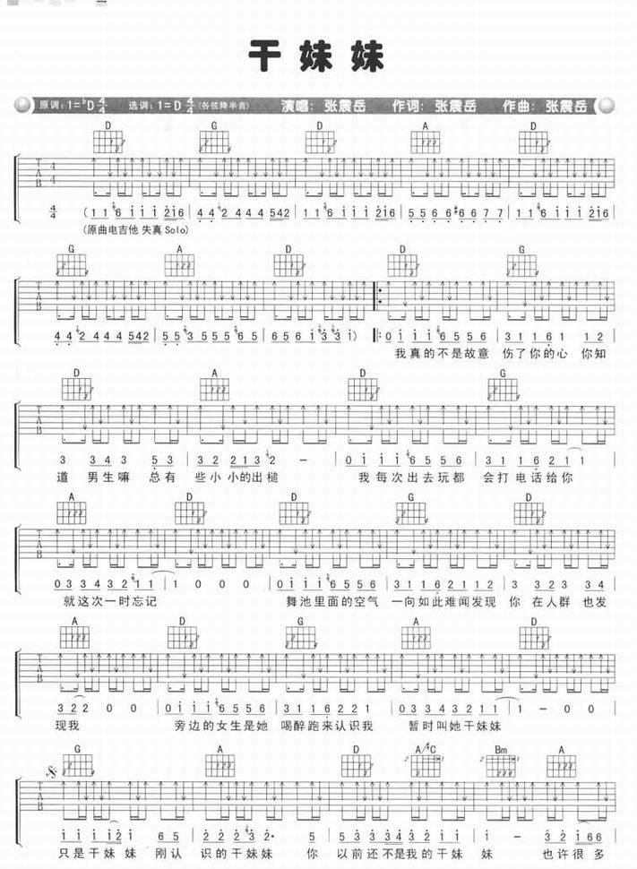 干妹妹-张震岳(吉他谱 吉他曲谱 吉他六线谱 吉他歌谱 吉它谱 影视吉他谱)