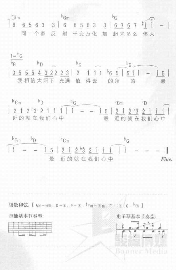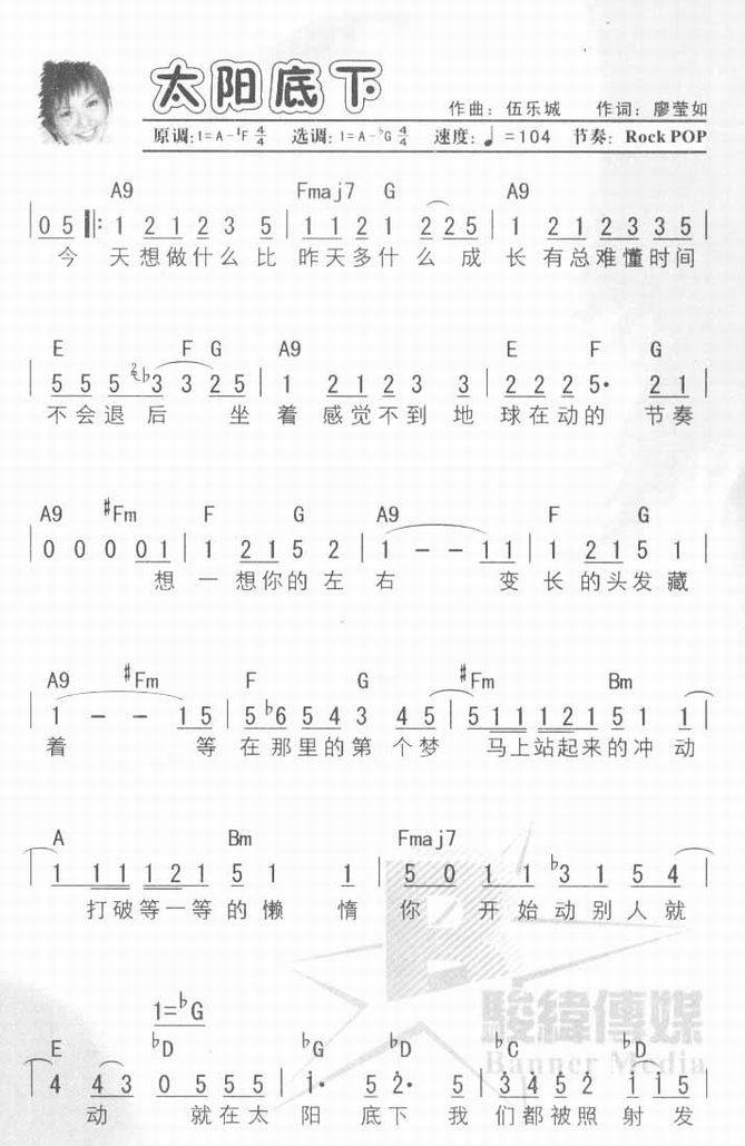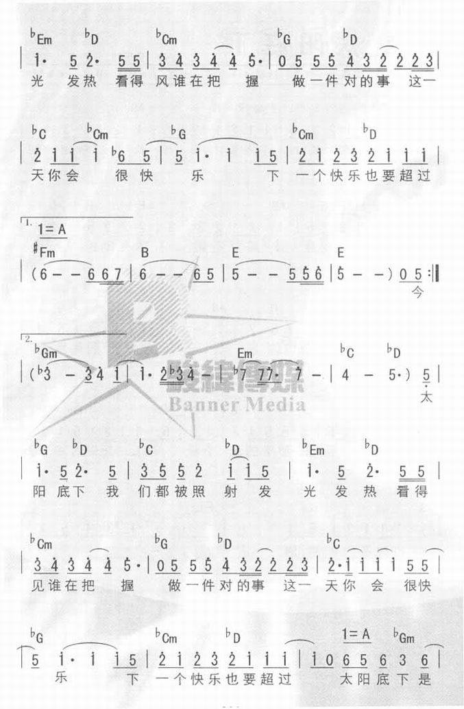 太阳底下-孙燕姿(简谱 歌谱 歌曲简谱 合唱简谱 影视简谱)