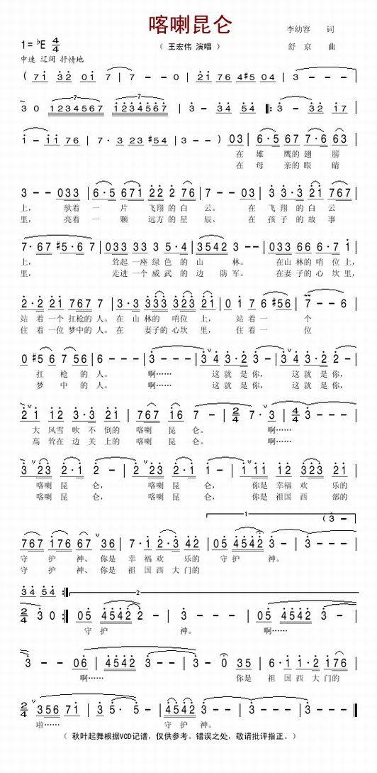 喀喇昆仑-王宏伟(简谱 歌谱 歌曲简谱 合唱简谱 影视简谱)