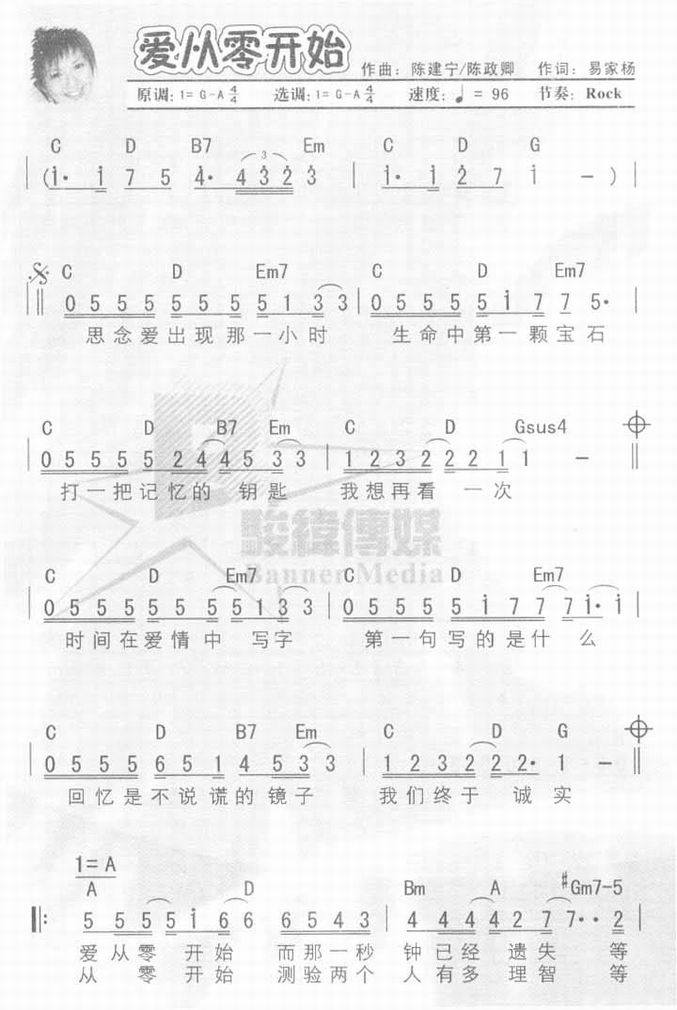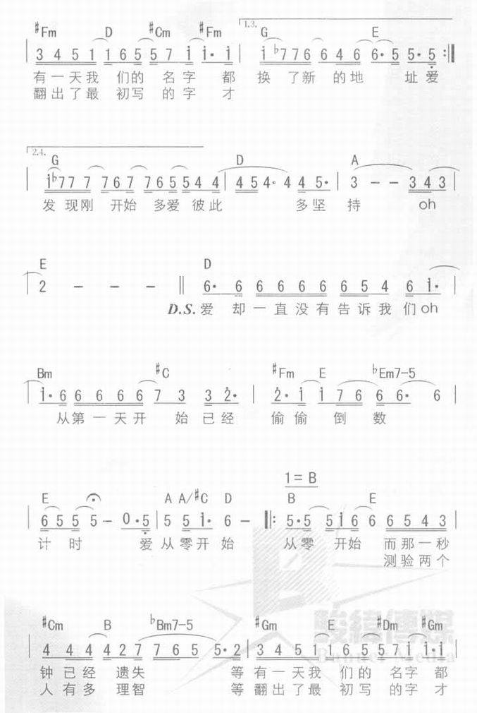 爱从零开始-孙燕姿(简谱 歌谱 歌曲简谱 合唱简谱 影视简谱)