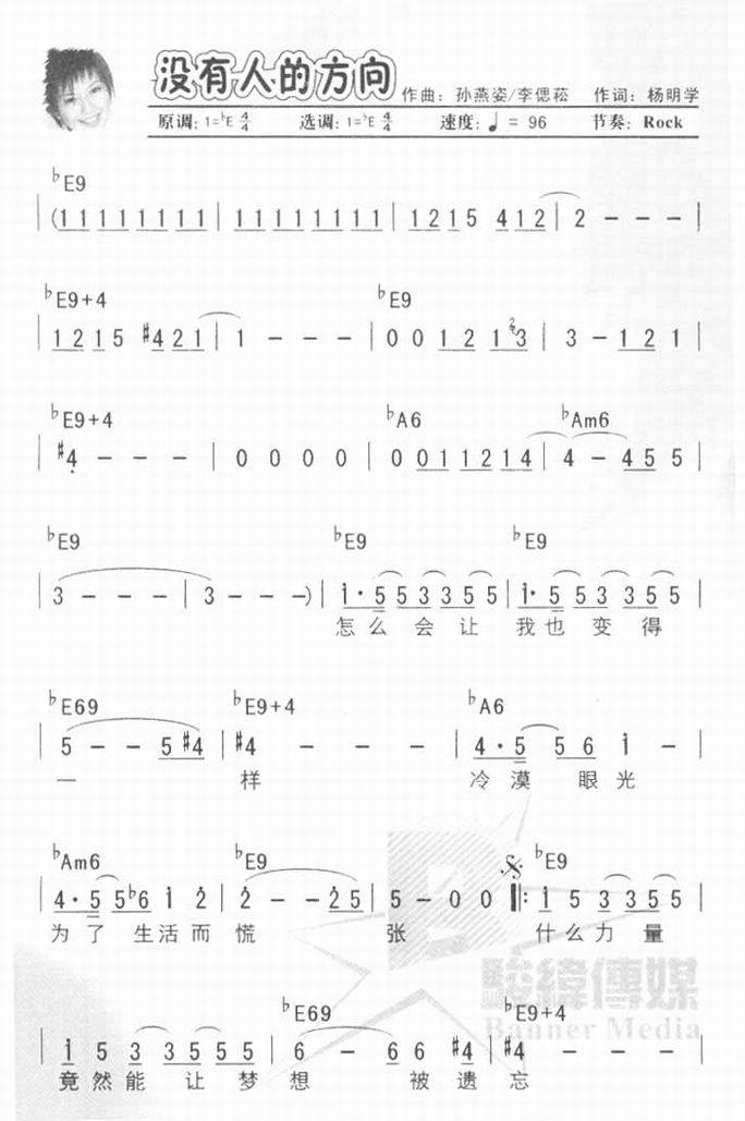 没有人的方向-孙燕姿(简谱 歌谱 歌曲简谱 合唱简谱 影视简谱)