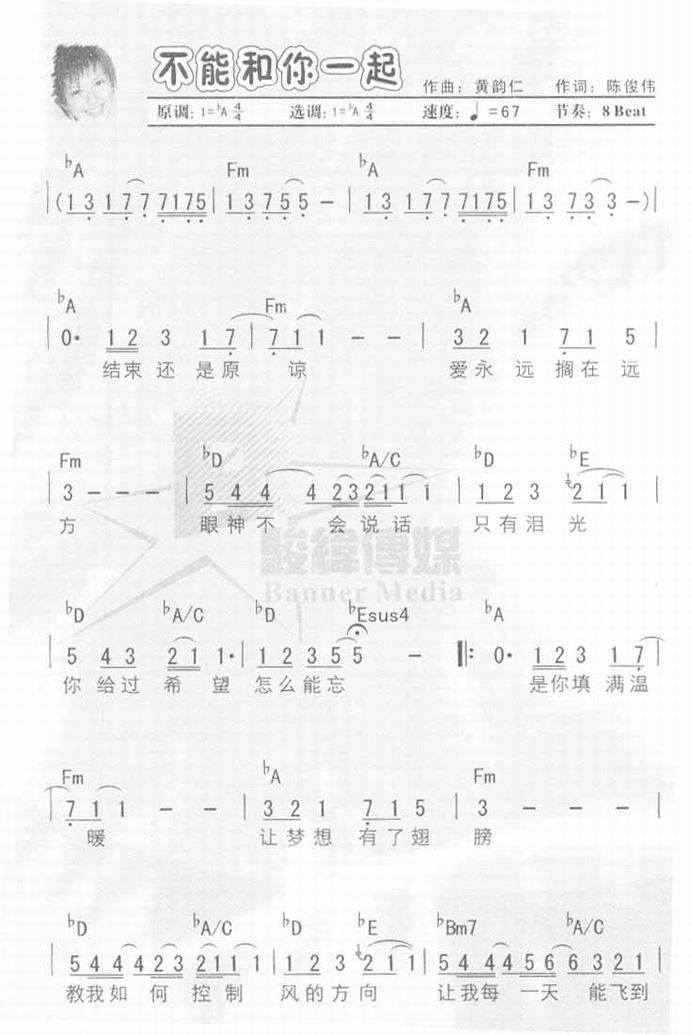不能和你在一起-孙燕姿(简谱 歌谱 歌曲简谱 合唱简谱 影视简谱)