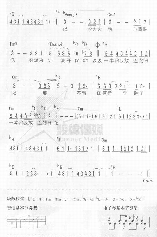 >> 星期一天气晴我离开你-孙燕姿(简谱)