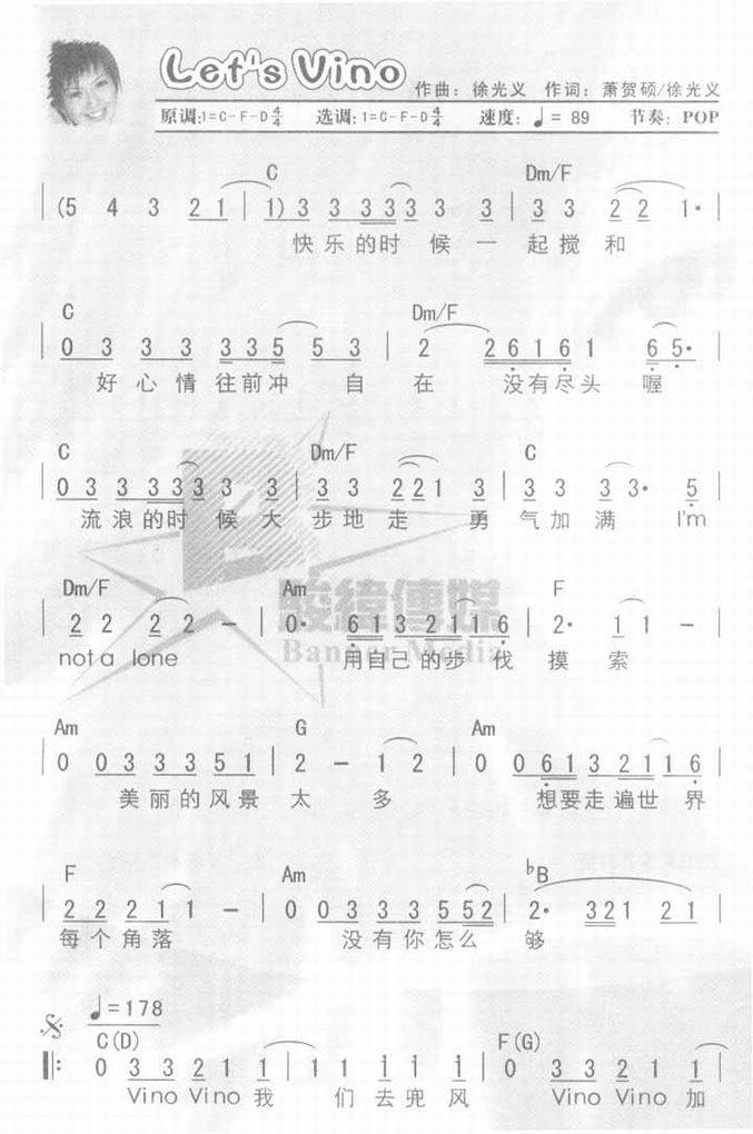 Let`s vino-孙燕姿(简谱 歌谱 歌曲简谱 合唱简谱 影视简谱)