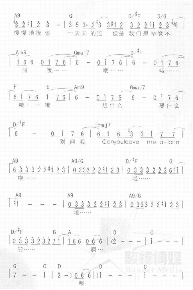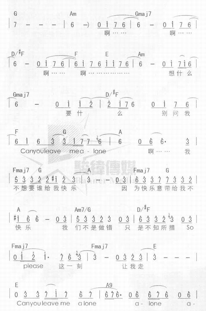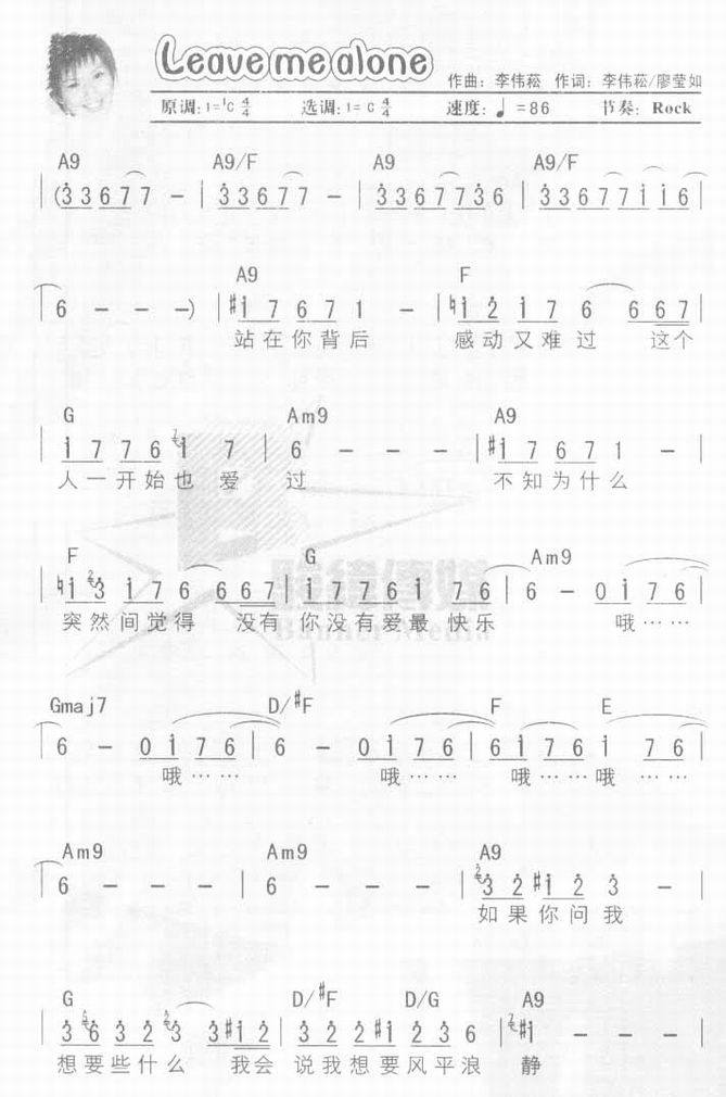 Leave me alone-孙燕姿(简谱 歌谱 歌曲简谱 合唱简谱 影视简谱)