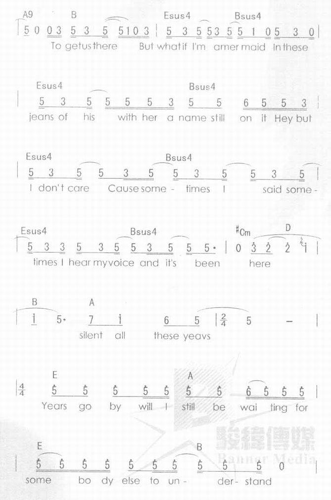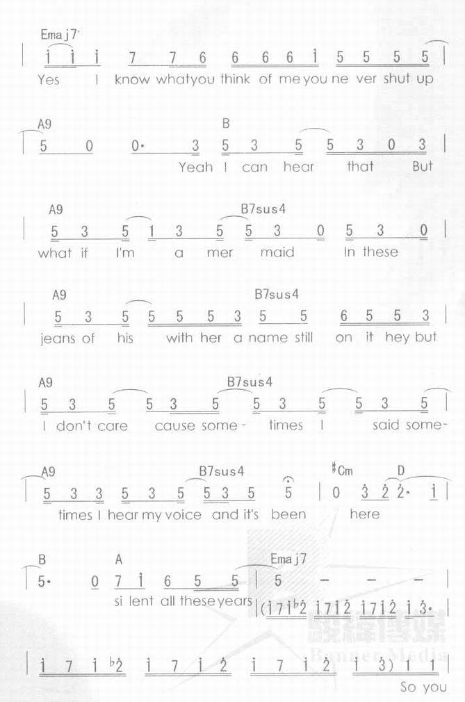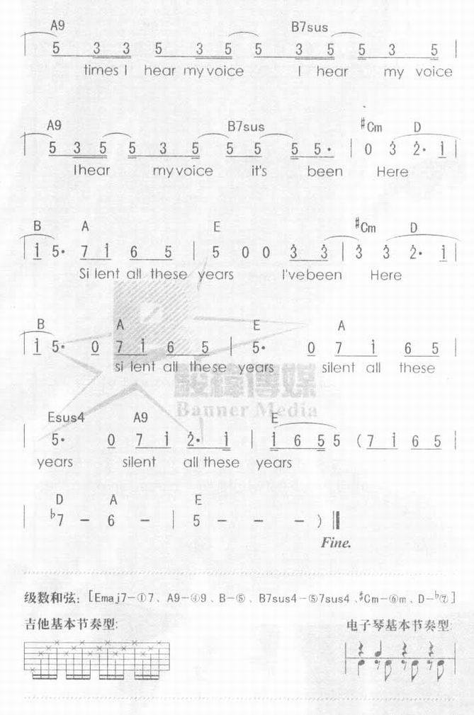 Silent all these years-孙燕姿(简谱 歌谱 歌曲简谱 合唱简谱 影视简谱)
