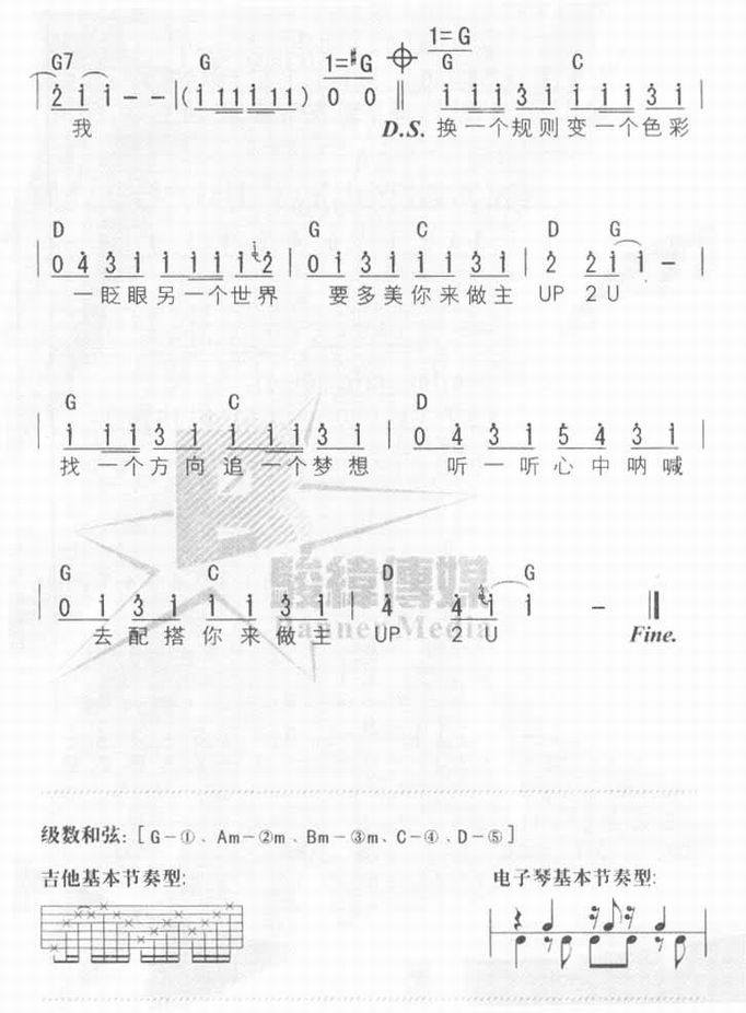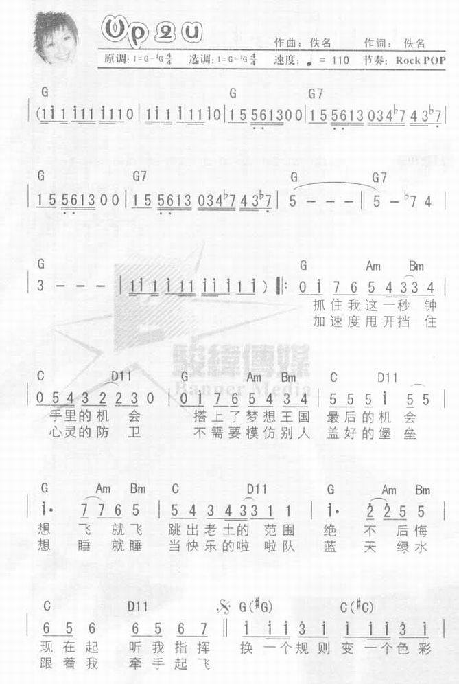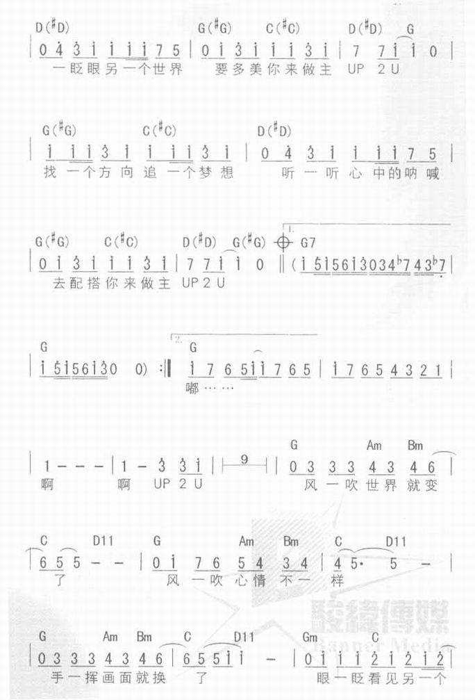 up2u-孙燕姿(简谱 歌谱 歌曲简谱 合唱简谱 影视简谱)
