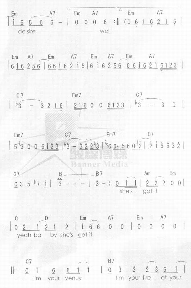 Venus-孙燕姿(简谱 歌谱 歌曲简谱 合唱简谱 影视简谱)