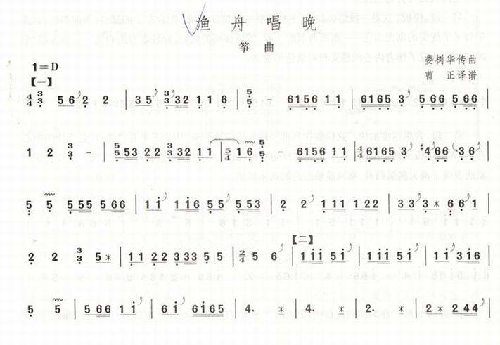 渔舟唱晚-古筝曲(简谱 民族乐曲简谱)