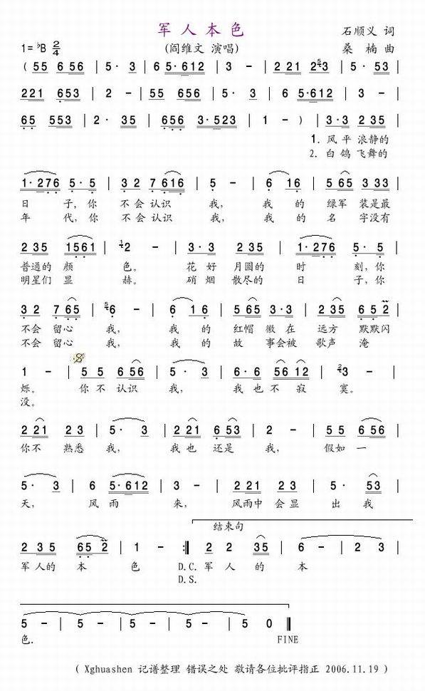 军人本色-阎维文(简谱 歌谱 歌曲简谱 合唱简谱 影视简谱)
