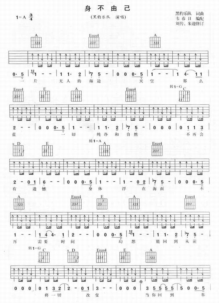 身不由己-黑豹乐队(吉他谱 吉他曲谱 吉他六线谱 吉他歌谱 吉它谱 影视吉他谱)