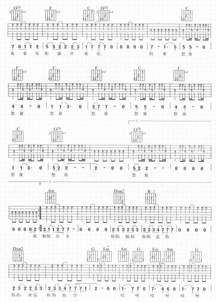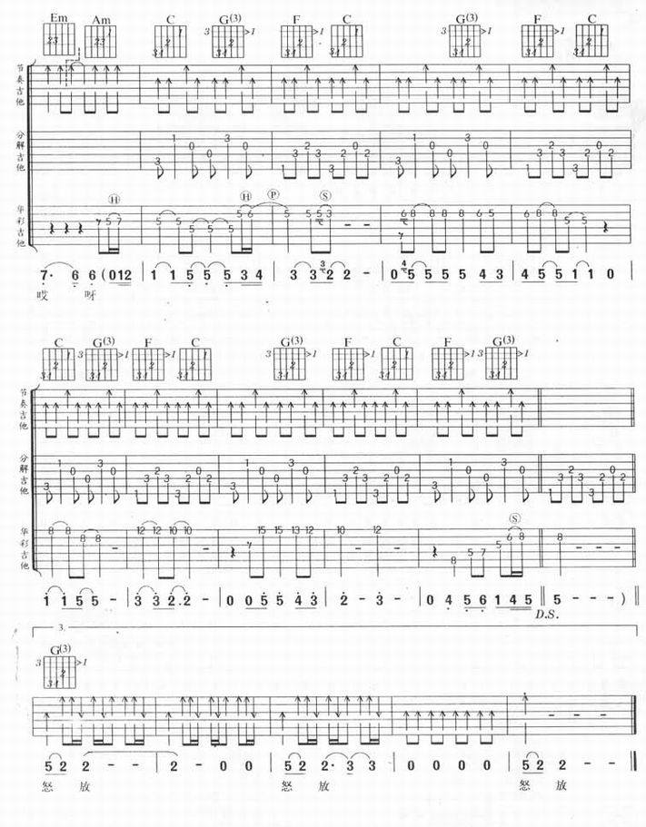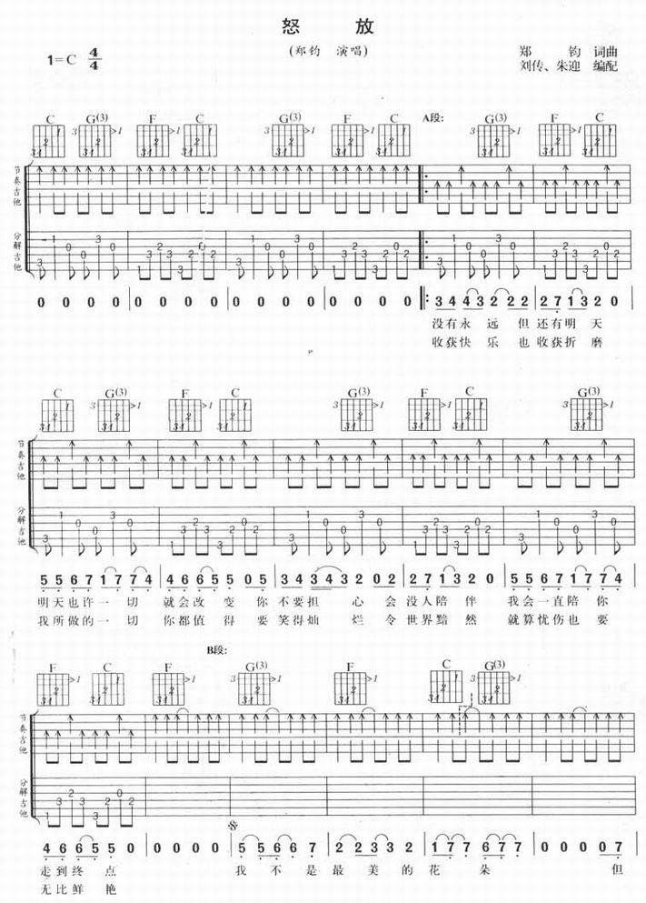 怒放-郑钧(吉他谱 吉他曲谱 吉他六线谱 吉他歌谱 吉它谱 影视吉他谱)