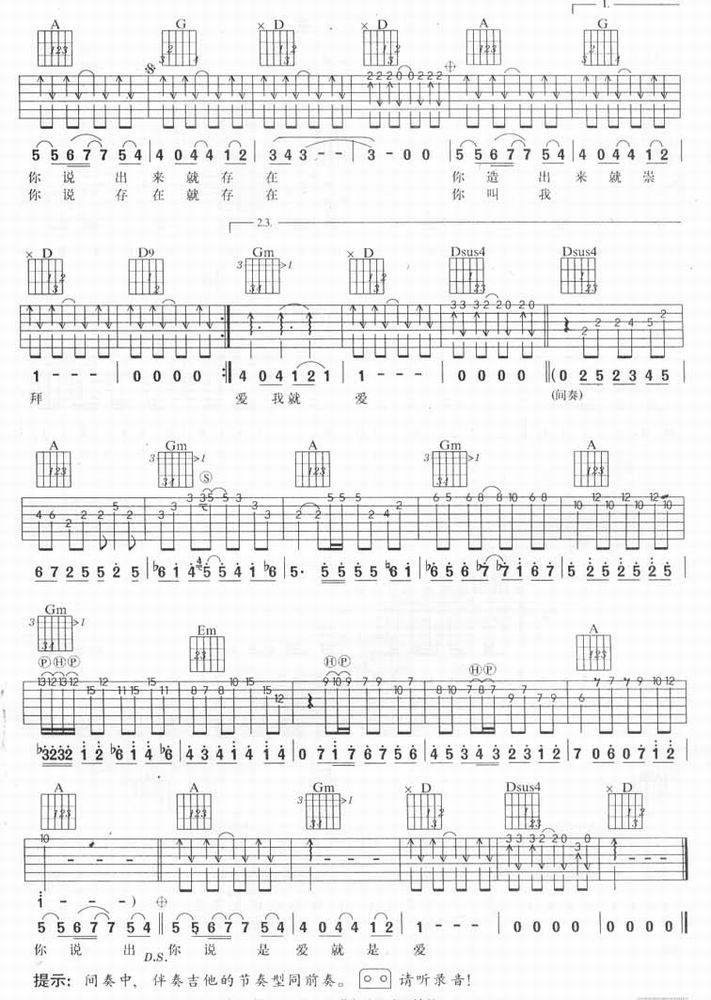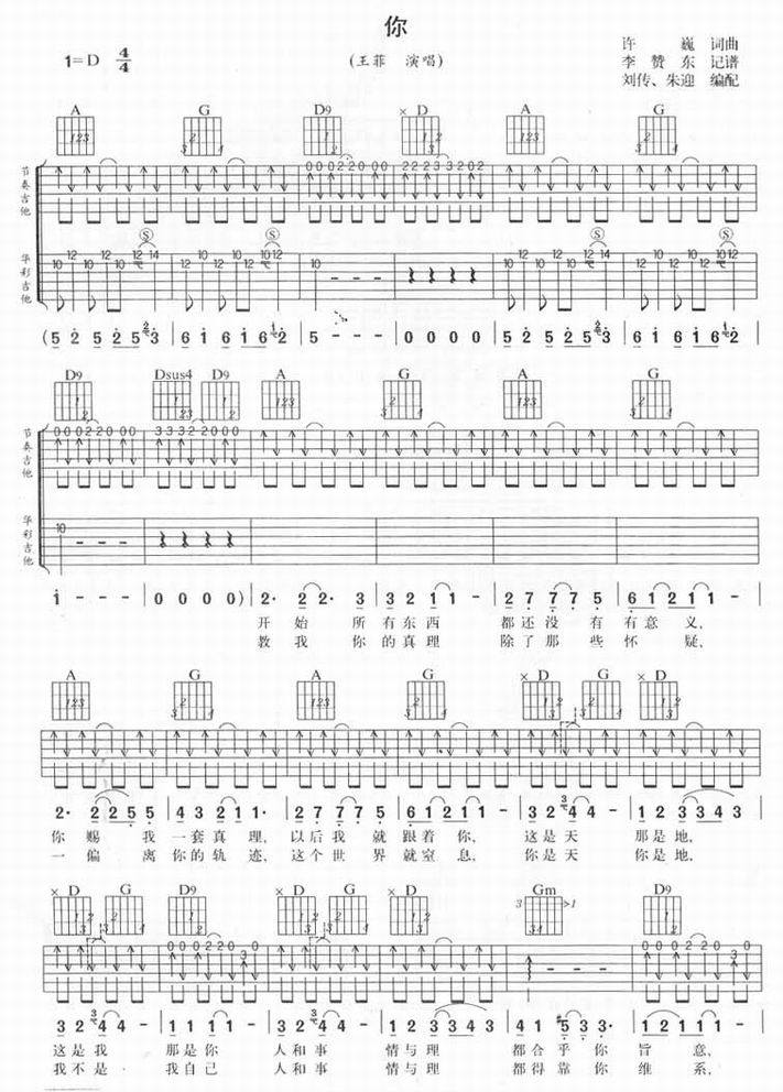 你-王菲(吉他谱 吉他曲谱 吉他六线谱 吉他歌谱 吉它谱 影视吉他谱)
