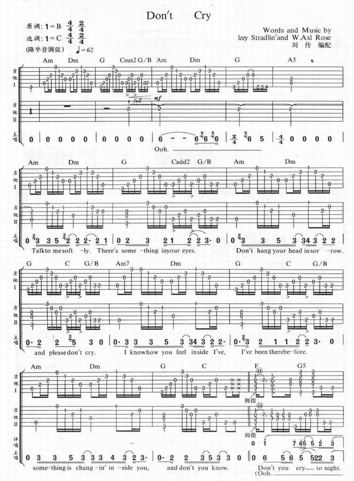 Don"t Cry-gun and roses枪和玫瑰(吉他谱 吉他曲谱 吉他六线谱 吉他歌谱 吉它谱 影视吉他谱)